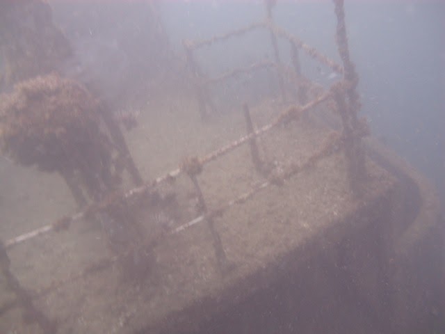 This wreck was sunken less than one year ago, so not much corrosion and growth has taken place yet.